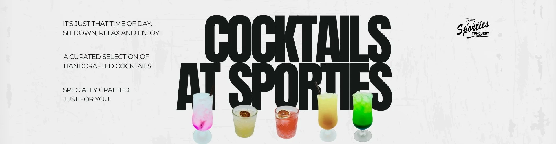 Cocktails at Sporties Thursday 29 May 2025 10:00 am 10:00 Sunday 31 January 2027 11:59 pm 23:59 Sporties Tuncurry 65 Beach Street Tuncurry NSW 2428 Australia (map) Google Calendar ICS It’s just that time of the day to sit down and relax!A curated selection of handcrafted cocktails specially designed just for you
